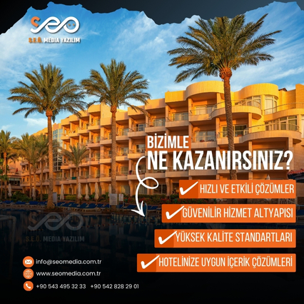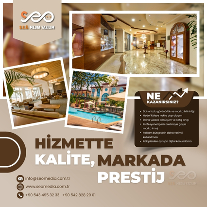Konaklama sektöründe markanızın güven veren ve profesyonel bir imajla öne çıkmasını sağlıyoruz. Tasarımlarımız; otelinizin konforunu, hizmet kalitesini ve misafir memnuniyetine verdiğiniz değeri dijitalde doğru şekilde yansıtır.